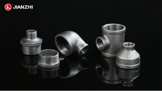 The main materials of malleable iron pipe fittings are: white heart malleable iron, black heart malleable iron, Pearlized malleable iron, JIANZHI fittings main material used in building support fittings is black malleable cast iron, which has good hardness and high plasticity and toughness. Most of the global malleable iron fittings manufacturers use black malleable cast iron as the raw Material of steel pipe fittings, only a small part of European businesses use white malleable cast iron as the Raw Material of steel pipe fittings.